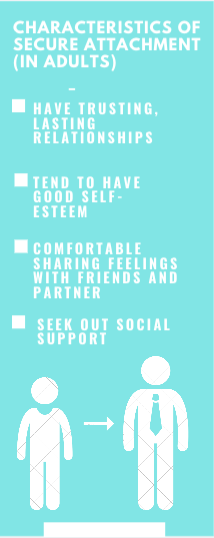 Longitudinal research has shown that as children grow older, those who were securely attached infants tend to exhibit more independence, self-confidence, and adaptability in different social situations. Contrastingly, insecurely attached infants tend to have lower self-esteem, struggle to form affectionate relationships in their later years, and tend to mistrust others.